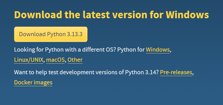 Downloads 누르면 바로 이렇게 나오는데, Download Python 3.13.3을 눌러서 설치해줍니다.